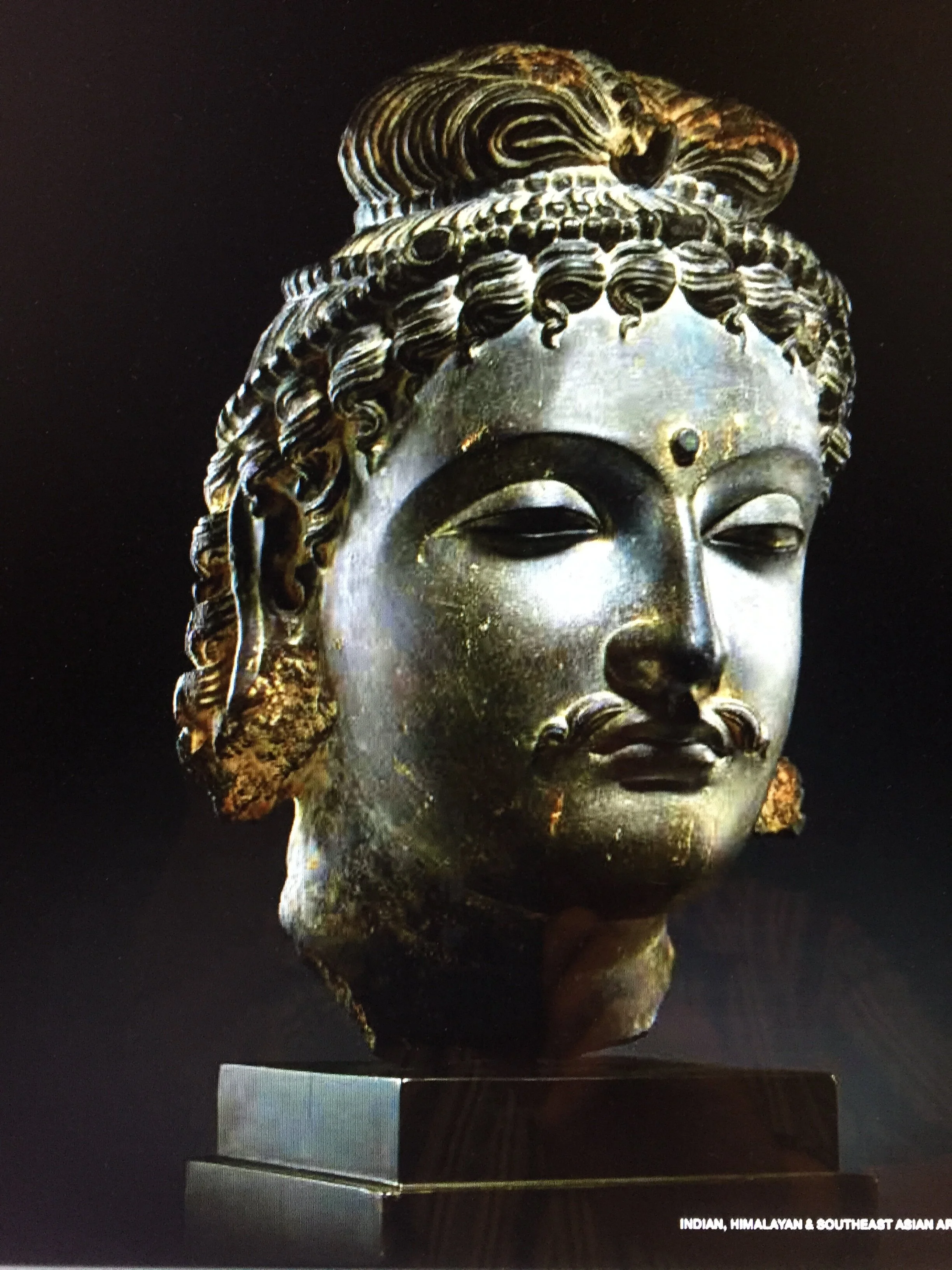 Gandharan sculptures are the result of Greco-Roman art being introduced into the tradition of Buddhism. When Alexander the Great came to India in 327 BCE his troops refused to go any further due to fatigue and that the Indian armies had elephants. So they retreated into northern India near the Silk routes, specifically what is now Afghanistan and Pakistan. This area was known as Gandhara, and was a major Buddhist kingdom. Alexander’s artists illustrated Buddhist themes with their Greco-Roman style. This tradition lasted for over one thousand years.